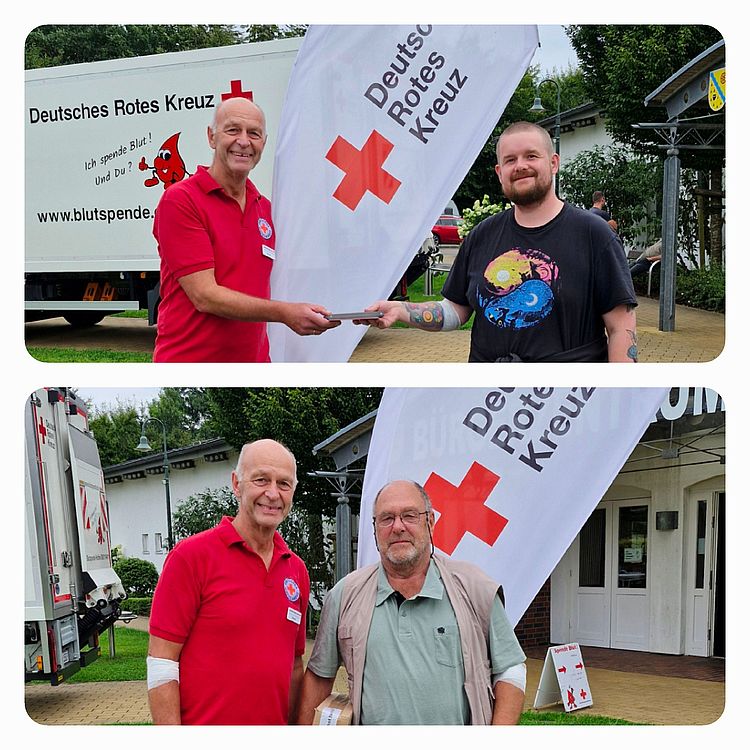 Aber nicht nur über die neuen Erstspender, sondern auch über unsere beiden fleißigen „Jubiläumsspender“ haben wir uns sehr gefreut. Patrick Holst mit 25 Blutspenden und Manfred Neumann mit stolzen 150 Blutspenden. Herzlichen Glückwunsch!